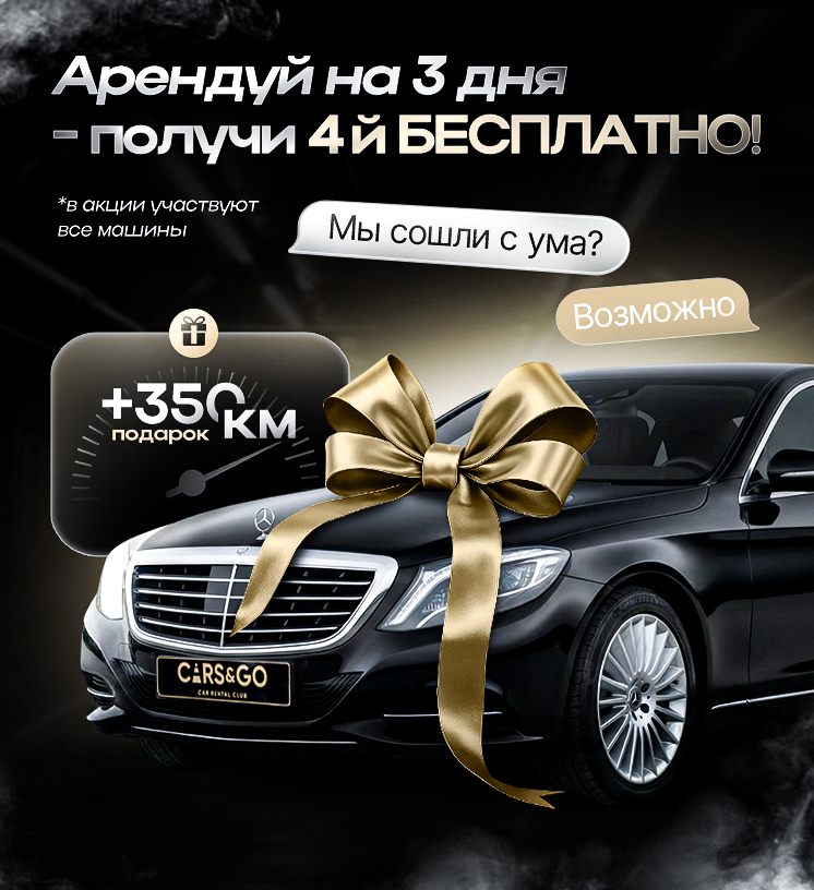 У Вас есть уникальный шанс получить 10% скидку на вашу первую аренду в CARS&GO! Воспользуйтесь промокодом «CARS10» и наслаждайтесь выгодной ценой. Не упустите возможность путешествовать с комфортом — выбирайте CARS&GO!